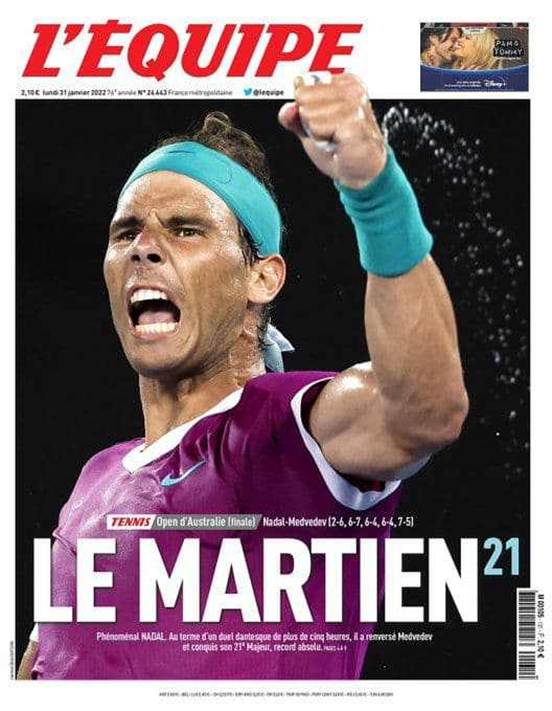 A menudo hemos usado la palabra «icónica» para describir las portadas de los periódicos y revistas que hemos analizado. Sin embargo, L’Équipe lleva las cosas a otro nivel: la portada celebra (o incluso crea) a un héroe, colocándolo en el centro de una historia épica para hacerla más memorable para los lectores. Las historias del periódico se condensan y perfeccionan para la revista del sábado, L’Équipe Mag —como la conocen los aficionados—, que con los años ha adquirido cada vez mayor importancia y popularidad (hasta el punto de que La Gazzetta dello Sport acabó creando una revista similar para complementar el periódico).