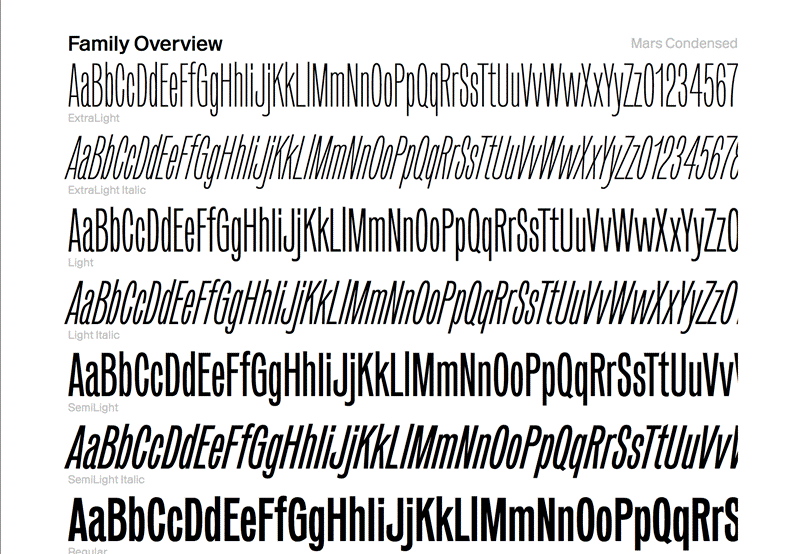 La fuente sans-serif Mars, diseñada en 2016 por Alaric Garnier, fue elegida para los titulares, mientras que ITC Cheltenham, una fuente serif clásica con un estilo británico, se utilizó para el cuerpo del texto.