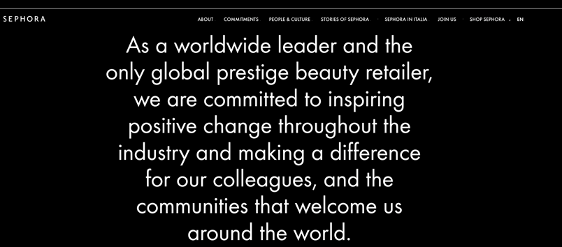 Sephora, por otro lado, adopta un ritmo más regular y un lenguaje más formal, manteniendo una sintaxis compuesta principalmente por oraciones coordinadas y un vocabulario inclusivo. El resultado es un tono institucional que conserva un matiz cálido («nosotros», «nuestros colegas»).