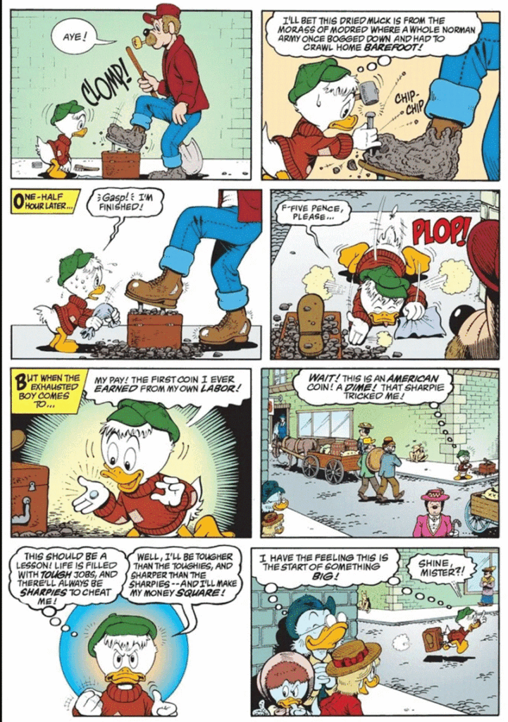 La historia es toda una biografía de Gilito McPato hasta 1947, año del primer relato de Carl Barks. Narra la vida de Gilito desde los 10 años en Glasgow, en 1877, donde el joven pato lustraba zapatos para sobrevivir. Sus aventuras lo llevan a convertirse en cowboy y buscador de oro en el Klondike (donde conoce a su único amor, Doretta Doremì), Australia y África, mientras amasaba su fortuna con esfuerzo y sacrificio.