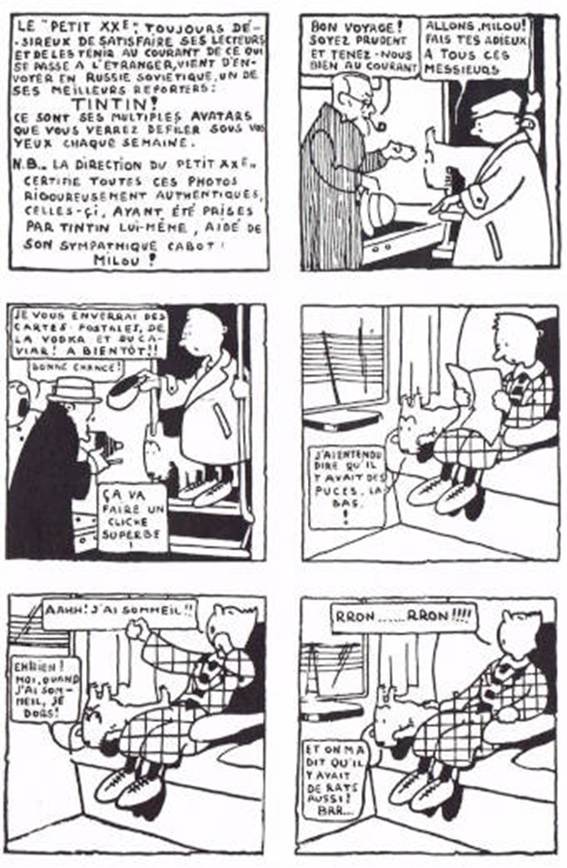 Esta primera aventura y las posteriores son, obviamente, historias de propaganda, con tramas bastante ingenuas. El éxito de la serie fue prácticamente inmediato y continuó con las historias Tintín en el Congo (1930-1931), que ensalza el colonialismo y las virtudes de los misioneros en la necesidad de educar a la población local. En la siguiente historia, Tintín en América (1931-1932), Tintín y Milú viajan a Estados Unidos, donde Hergé disfrutó enfrentando a su héroe contra el gánster Al Capone y los nativos americanos.
