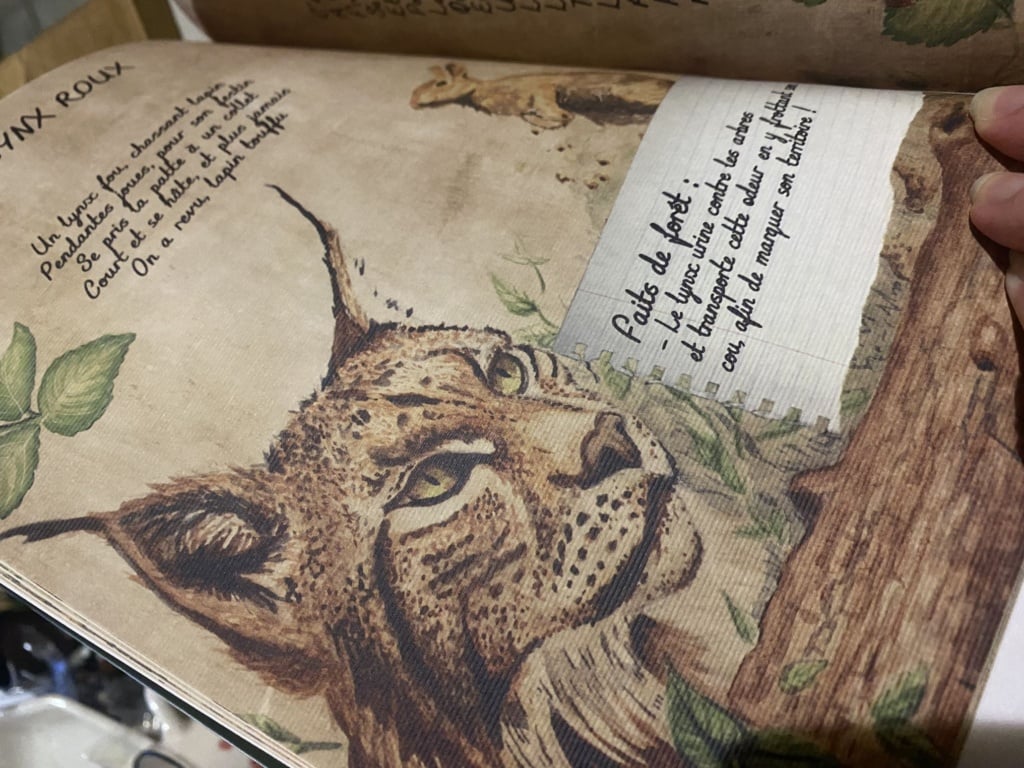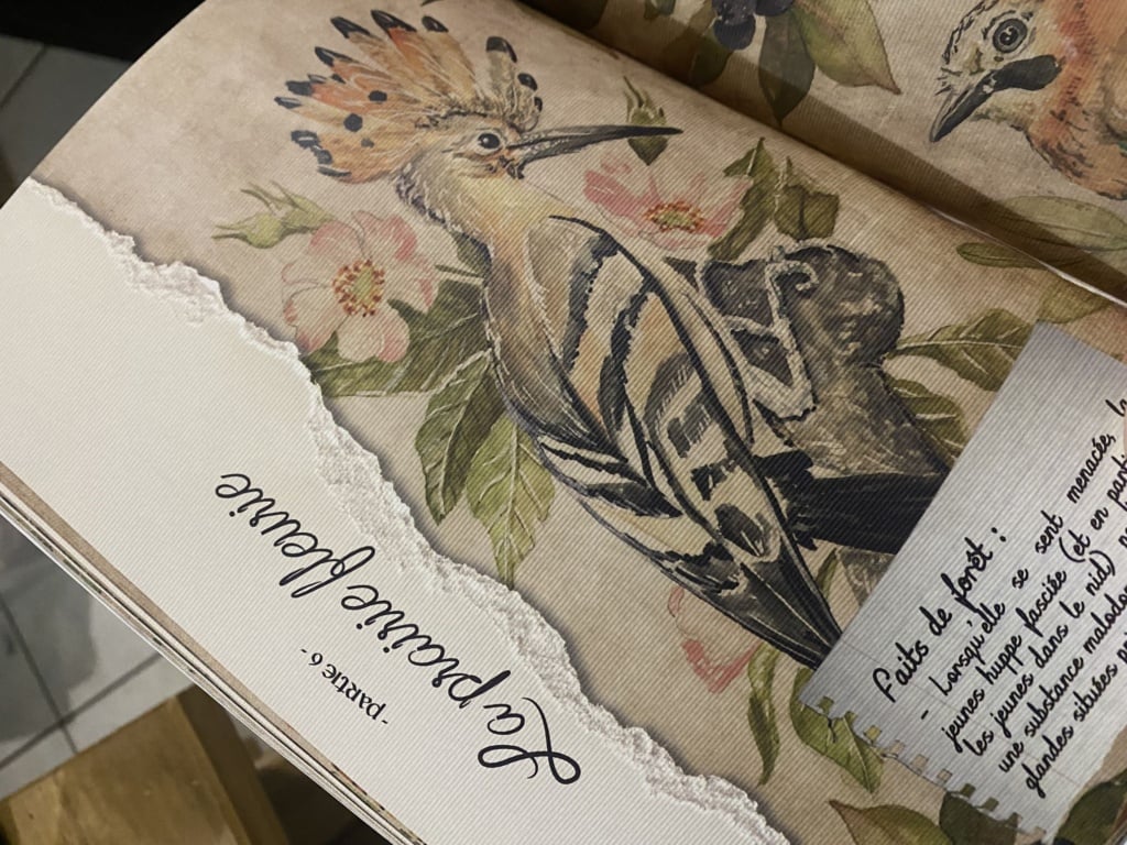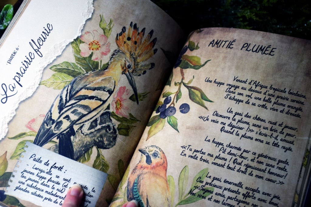 Durante el confinamiento por Covid, le pedí a mi padre que escribiera diez poemas sobre el bosque… y me dio un cuaderno completo de borradores. Entonces decidí convertirlo en una colección ilustrada con acuarela. Gracias a mis habilidades en diseño gráfico y maquetación, pude crear el libro por completo de principio a fin.
