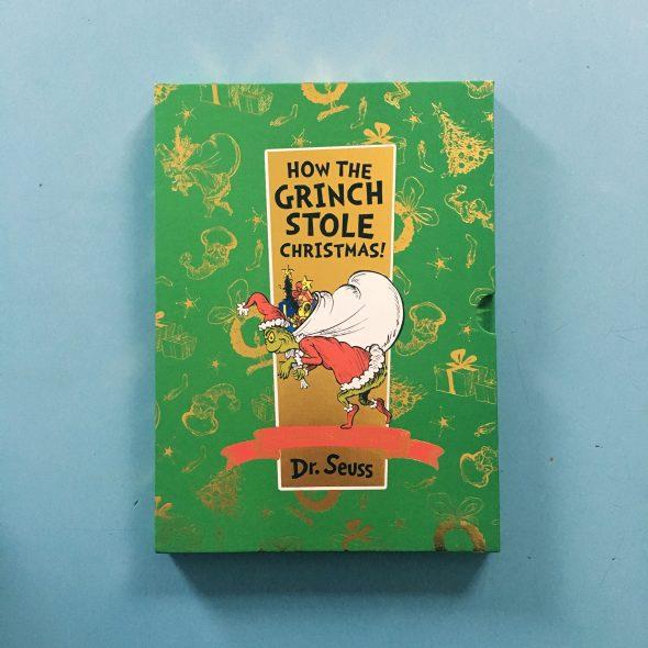 A pesar de estar protagonizada por una criatura gruñona que odia la Navidad —quizás porque su corazón es un par de tallas más pequeño de lo normal—, la portada original de ¡Cómo el Grinch robó la Navidad! es bastante festiva, al menos en lo que respecta a su combinación de colores: rojo, blanco y verde, los tonos típicamente asociados con la Navidad [lee nuestro artículo «Los símbolos y colores de la Navidad, con algunas curiosidades»].