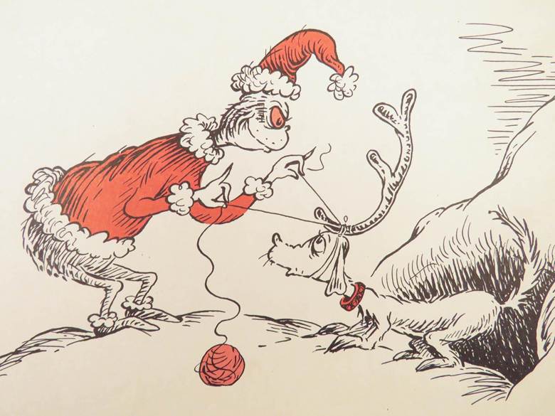 En la portada de la primera edición del libro, el Grinch no tiene la piel verde a la que estamos acostumbrados, ni tampoco es verde en el interior del libro, donde los únicos colores utilizados son el rojo y el blanco. Dr. Seuss lo dibujó originalmente blanco con ojos rosados.